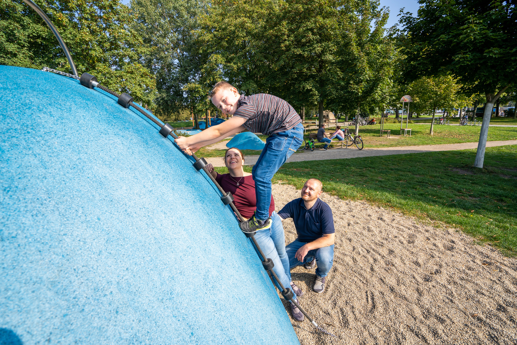 Wenn Sie mit Kindern unterwegs sind, finden Sie rund um den Senftenberger See zahlreiche Spielplätze für Bewegung und kleine Abenteuer. Direkt am Rundweg können Sie Ihre Fahrradtour zwischendurch unterbrechen und die tollen Spielmöglichkeiten als Pause nutzen. Die beiden liebevoll gestalteten Themenspielplätze "Bergmann" und "Vom Bergmann zum Seemann" greifen auf kreative Weise die Geschichte des Lausitzer Seenlandes auf. Hier wird der Wandel vom Braunkohletagebau zum Urlaubsparadies spielerisch erlebbar. Der Spielplatz "Spur der Steine" am Stadthafen ist mit seinen blauen Kletterhügeln, Sandkästen und Kletterelementen ebenfalls ein echter Magnet für Kinder jeden Alters. Auch am Seestrand Niemtsch und in Buchwalde am Wohnmobilstellplatz sorgen weitere Spielplätze für Abwechslung und Bewegung.