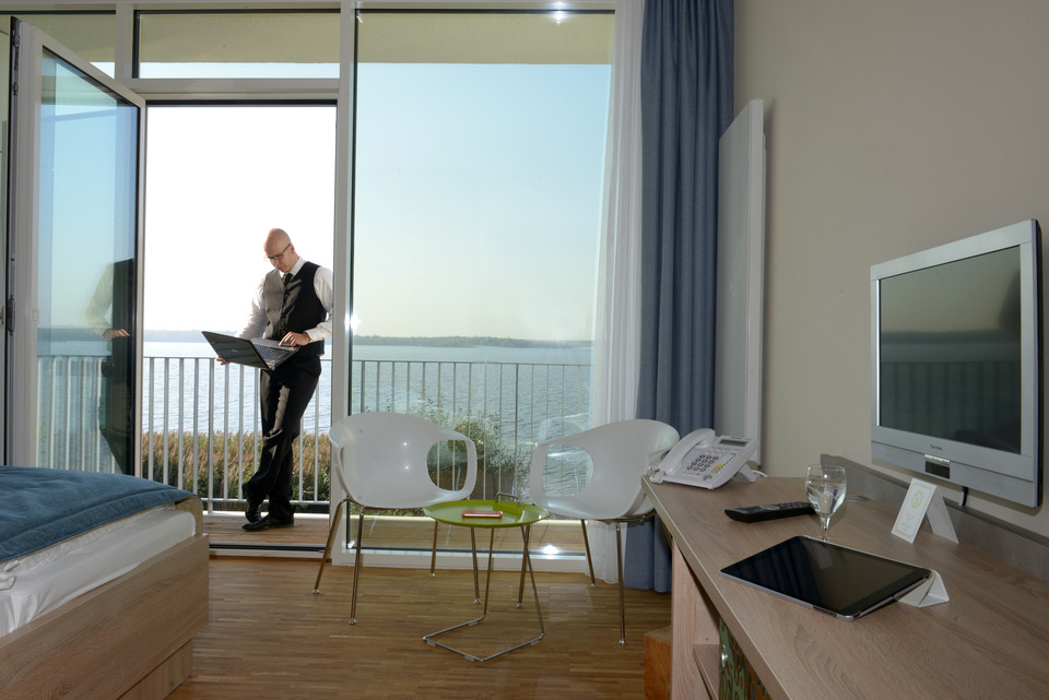Das Strandhotel Senftenberger See bietet ideale Bedingungen für erfolgreiche Tagungen und Geschäftsreisen im Lausitzer Seenland. Unser lichtdurchfluteter Tagungsraum direkt am Restaurant ist mit moderner Tagungstechnik ausgestattet und eignet sich perfekt für Seminare, Besprechungen und Workshops. Beamer, Leinwand, Flipchart, Moderationsmaterial und WLAN-Zugang für alle Teilnehmenden stehen bereit. Für das leibliche Wohl sorgt unser Restaurant mit individuell wählbaren Tagungspauschalen, die schmackhafte Menüs, Kaffepausen, Snacks und Getränke beinhalten. Wenn Ihre Veranstaltung an mehreren Tagen stattfindet, übernachten Sie komfortabel in unseren Zimmern mit Seeblick oder zur Landseite. Zur Auflockerung bieten sich zudem Ausflüge mit dem Fahrgastschiff Santa Barbara auf dem Senftenberger See oder geführte Radtouren mit unserem Partner iba-aktiv-tours an. Ihren Arbeitstag können Sie mit einem Spaziergang am Wasser oder einem Besuch in unserer kleinen Sauna ausklingen lassen.